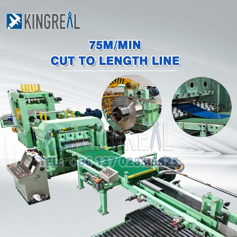 KINGREAL STEEL SLITTER Coil Cut To Length Line Τρόλεϊ τροφοδοσίας, decoiler, ίσιωμα, σερβοτροφοδότης, fly shearing machine, τραπέζι εκφόρτωσης και αυτόματο τραπέζι στοίβαξης κ.λπ. Ο εξοπλισμός που έχει διαμορφωθεί στη γραμμή κοπής σε μήκος πηνίου δεν είναι σταθερός, το KINGREAL STEEL SLITTER μπορεί να παράγει προσαρμοσμένες μηχανές παραγωγής σύμφωνα με τις ανάγκες του πελάτη.